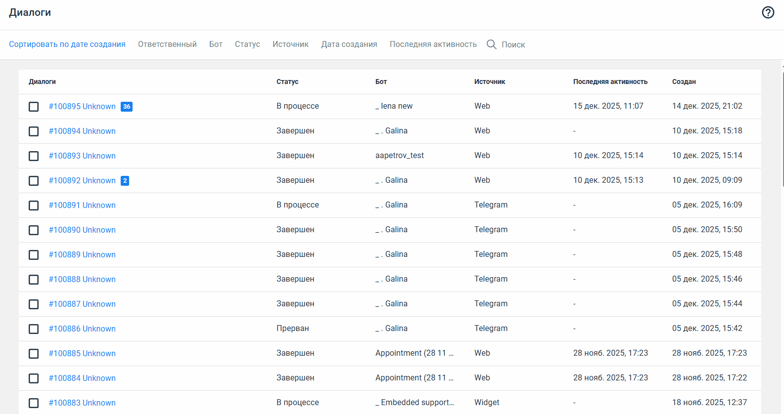 теперь доступна сортировка списка диалогов по дате создания или последним сообщениям